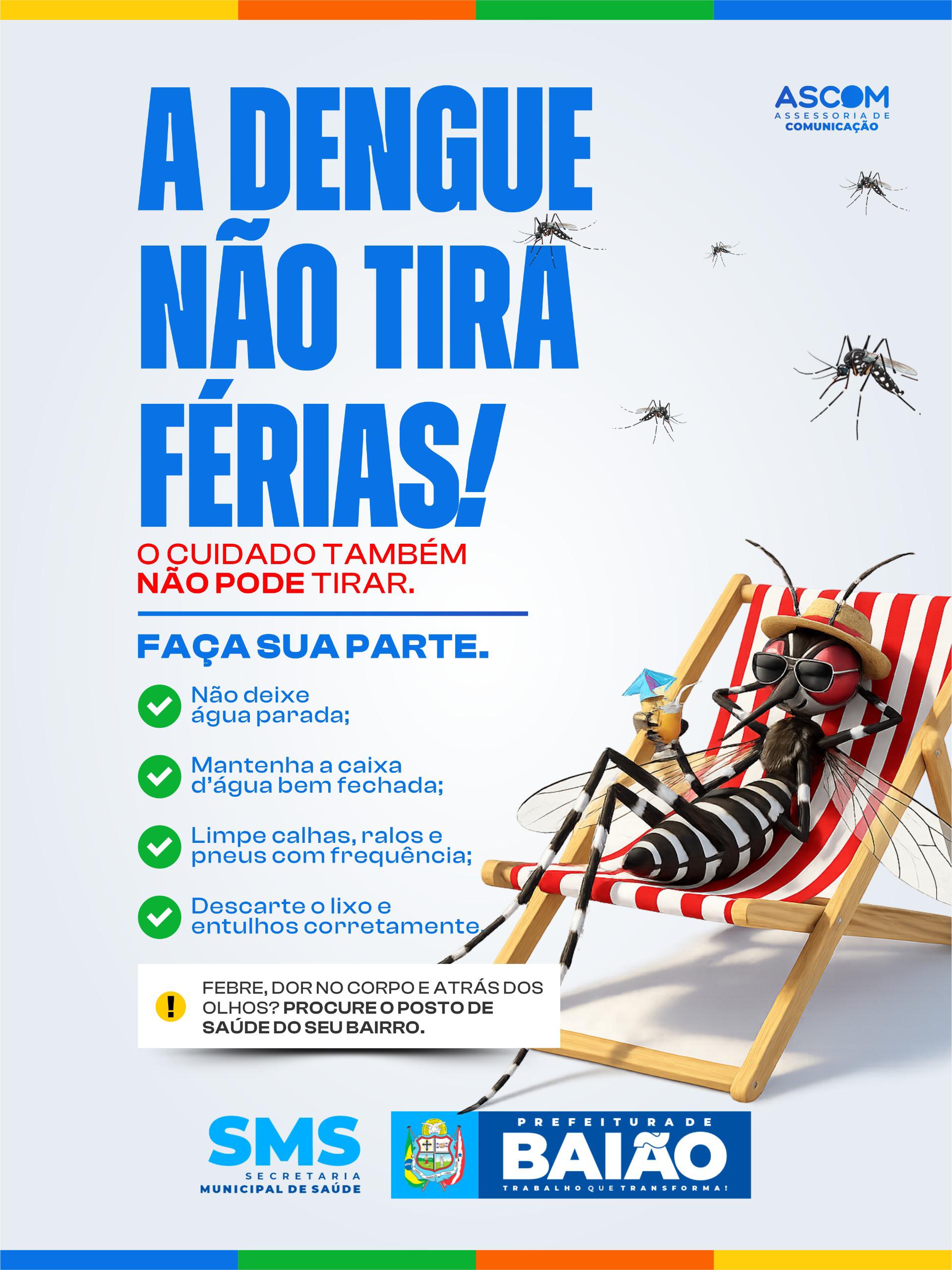 Mesmo no período de descanso, a prevenção precisa continuar. Pequenas atitudes fazem toda a diferença no combate ao mosquito transmissor da dengue.
