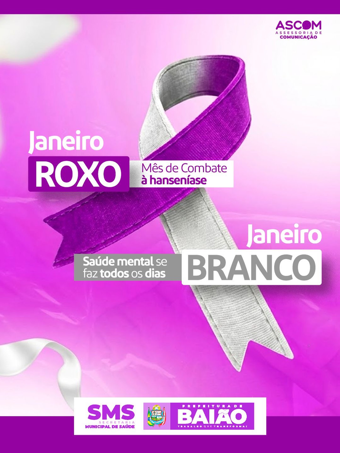 Já o Janeiro Roxo reforça a importância da prevenção, diagnóstico precoce e combate à hanseníase, garantindo mais dignidade e qualidade de vida para nossa população.