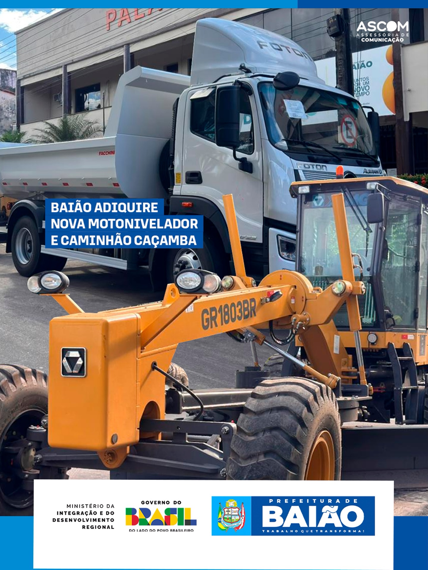 A Prefeitura de Baião segue investindo no fortalecimento dos serviços públicos e, desta vez, adquiriu novos maquinários para ampliar a capacidade de atendimento no município.